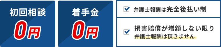 当事務所では、賠償金が増額できなければ皆様からの費用は一切いただいておりません。費用倒れの心配はありませんので、ぜひお気軽にご相談ください。