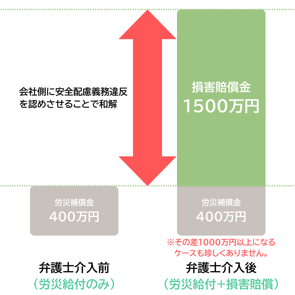 会社に対して「慰謝料」や「逸失利益」を請求することで、獲得金額は数倍になることがあります。