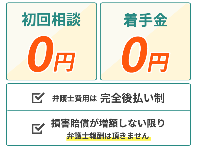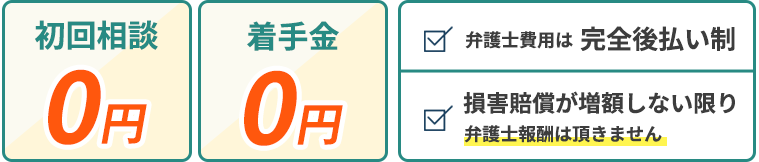 当事務所では、賠償金が増額できなければ皆様からの費用は一切いただいておりません。